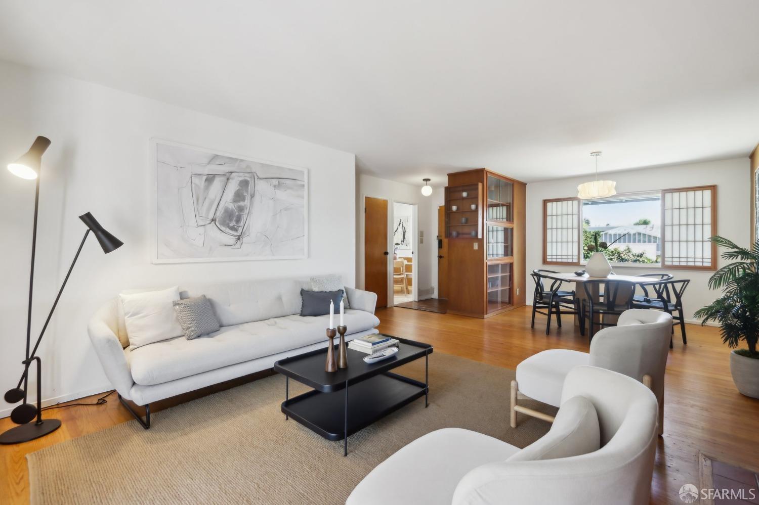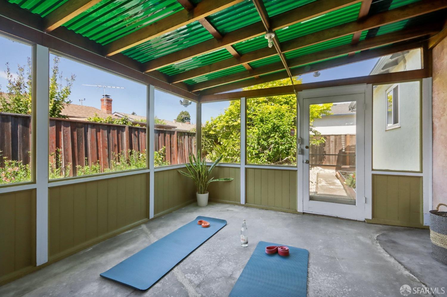 From the moment you arrive, you'll appreciate this charming 3-bedroom, 2 bathroom home and its inviting atmosphere. Freshly painted and beautiful hardwood floors throughout. The spacious living and dining area opens to a covered Sunroom perfect for family dinners, playtime, or simply relaxing. An additional patio offers a versatile space for BBQs, weekend hangouts, or even a future home gym. You'll also enjoy the convenience of the large two-car garage and long driveway, with plenty of room for parking, storage, a washer/dryer, and a workshop area. Ideally located just minutes from parks, the Bay Trail, schools, shopping, and dining with easy freeway access. This move-in ready home is the perfect place to begin your next chapter.